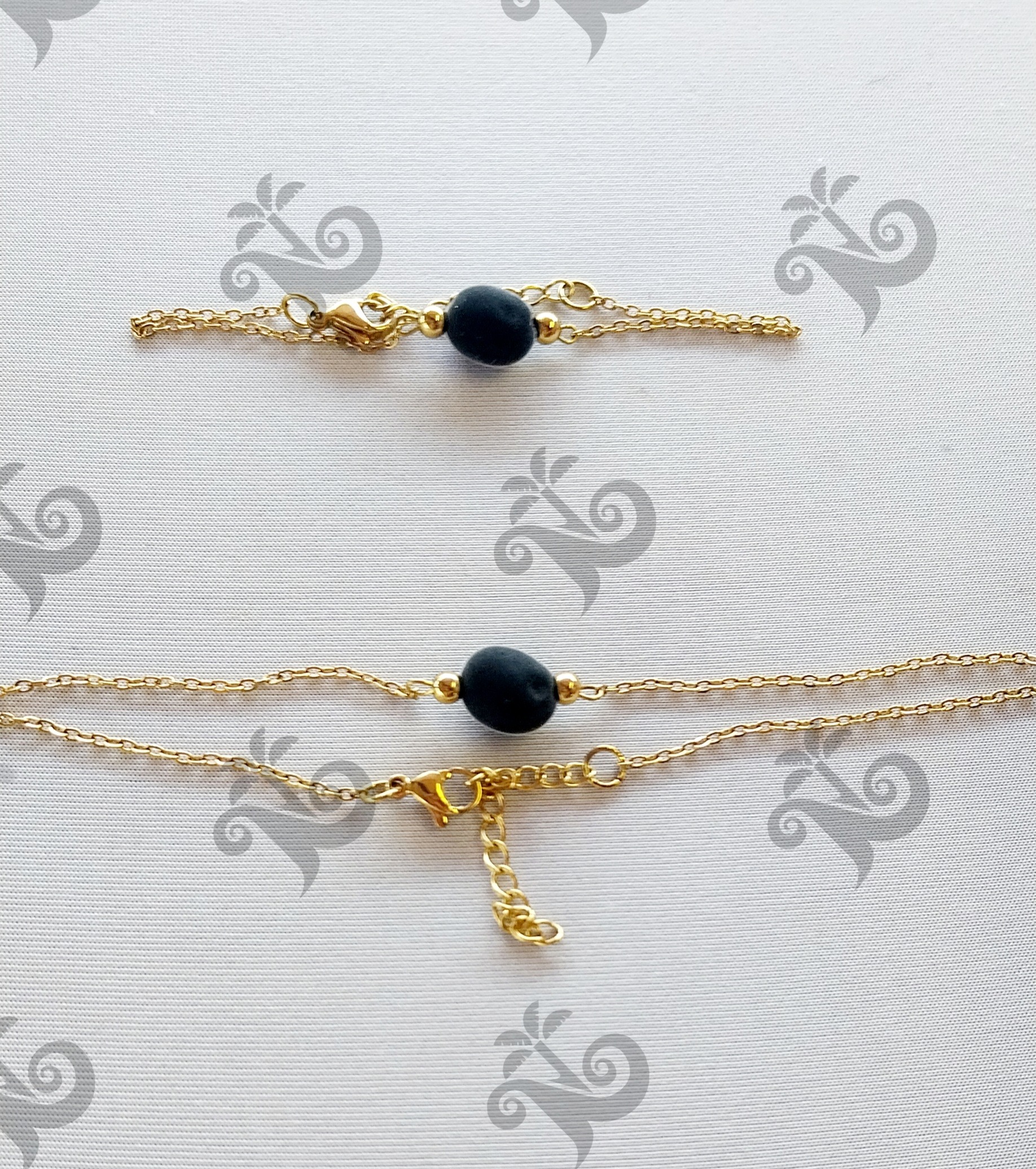 Collier et Bracelet réglables en acier chirurgical dorées avec une graine naturelle zanzibar qui est un anti stress.
