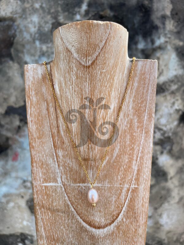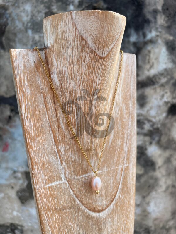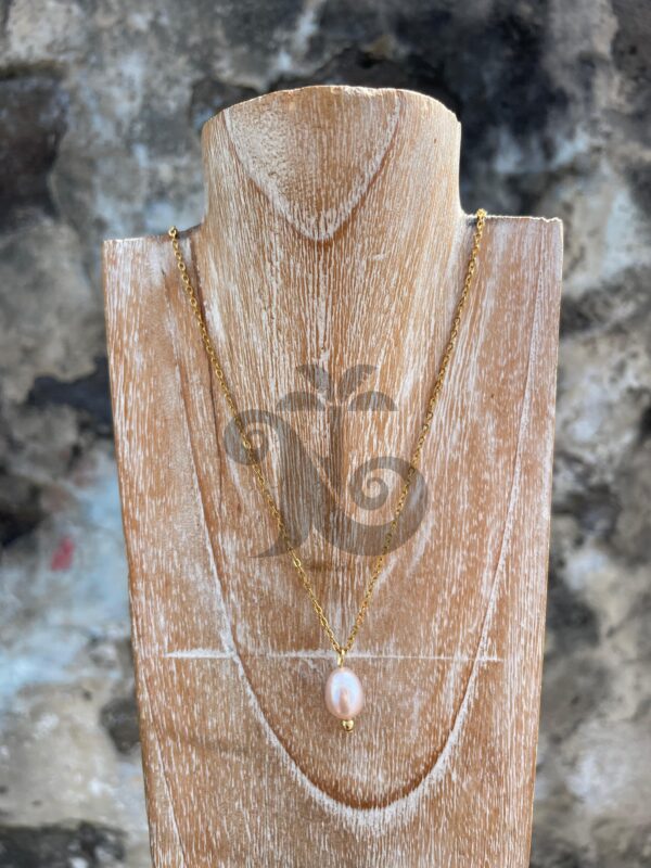 Collier en acier chirurgical doré avec une magnifique perle d'eau douce rosée.